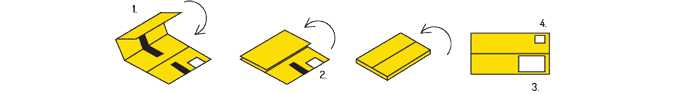 RePack macht dir den Rückversand ganz einfach! Falte RePack im leeren Zustand auf Briefformat und klapp den integrierten Rücksendeschein mit der Aufschrift "Reply paid" sichtbar auf die Außenseite der Verpackung. Schließ den Klettverschluss und wirf RePack einfach in den nächsten Briefkasten.
